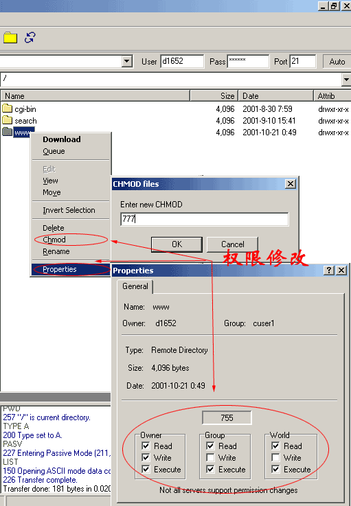 1、登录FTP——相应目录——按右键——属性!